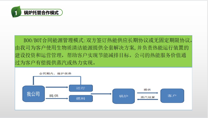 樂山勇騰生物能源有限公司,位于四川省樂山市五通橋區(qū)石麟鎮(zhèn)麒麟街463號。是一家集生物質(zhì)能源技術(shù)研發(fā)、技術(shù)推廣、產(chǎn)品制造、銷售為一體的企業(yè),專業(yè)從事生物質(zhì)能源項目投資,設(shè)備生產(chǎn),安裝運營,燃料供應,能源托管的綜合性服務企業(yè)。公司依托強大的研發(fā)和技術(shù)實力,在實踐中逐步形成了富有競爭力的“3+1”業(yè)務運營模式(燃料生產(chǎn)與銷售、鍋爐承包托管業(yè)務、設(shè)備節(jié)能改造+供熱項目投資運營),年銷售額達數(shù)千萬元。